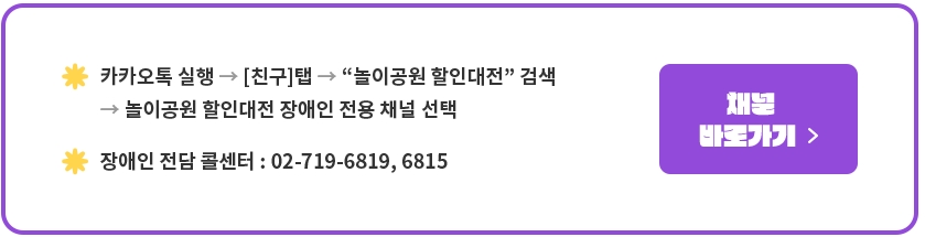놀이공원 할인대전 카카오톡 전용 채널에서