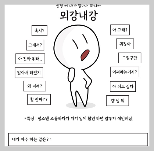 무의식적으로 자주 하는 말이 무엇인지 테스트해보세요. 스스로는 잘 모르지만 가끔 돌아볼 필요가 있답니다.