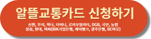 먼저 11곳(신한, 우리, 하나, 티머니, 로카모빌리티, DGB, 국민, 농협, 삼성, 현대, 비씨(IBK기업은행, 케이뱅크, 광주은행, BC바로)의 카드 발급사에서 알뜰교통카드를 신청합니다. 신청하실 분은 아래에서 카드사별 연회비나 혜택 등의 조건을 비교해 보시고 신청하시면 됩니다.
