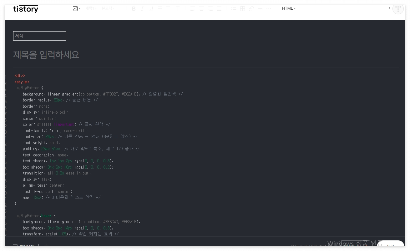 | 초보자 티스토리 버튼 디자인 바꾸는 방법 (5) | 2025.07.18 |