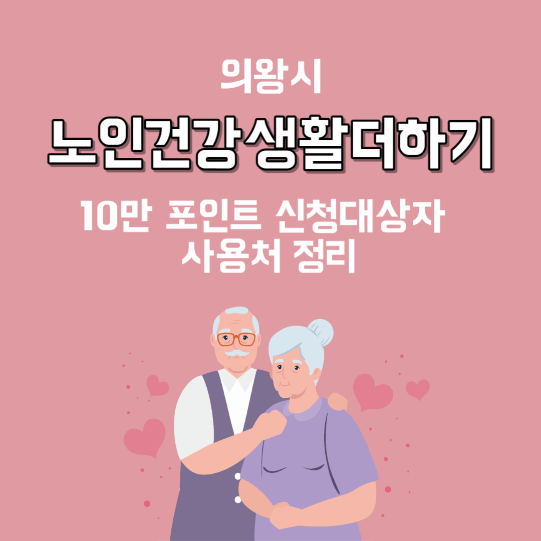 더운 여름 할머니 할아버지들은 더욱 건강에 유의해야 할 계절입니다. 의왕시에서 노인 건강 생활 더하기라는 정책으로 10만 원에 해당하는 금액을 포인트로 준다고 합니다. 신청가능조건과 카드사용처를 알아보겠습니다.