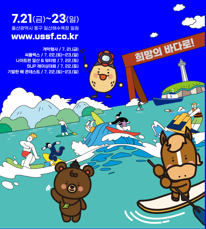 조선해양 축제란 울산광역시 동구 일산해수욕장에서 열리는 행사로 맨손 고기잡이 체험, 동구밭 수박화채, 플라이 보드쇼, 해양 레포츠 체험 등을 체험할 수 있고 일산비치 워터밤 나이트런 일산 기발한 배 콘서트등의 재미있는 프로그램에 참여할 수 있습니다.